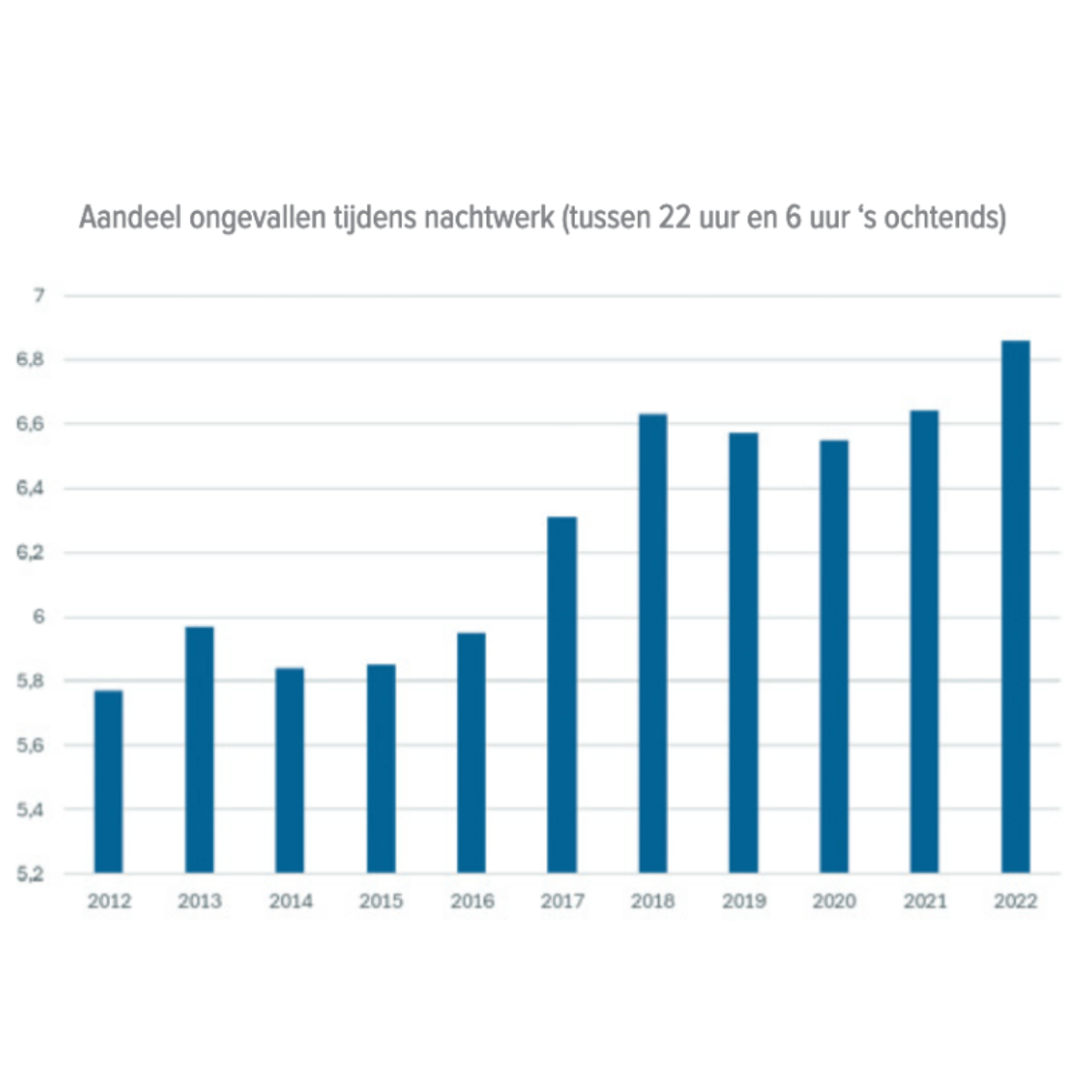 Toch kennen veel ongelukken structurele oorzaken: verhoogde werkdruk, gebrek aan personeel, nachtdiensten, ... Wat het laatste betreft: mensen zijn gemaakt om overdag actief te zijn, niet 's nachts. Nachtwerk komt echter steeds vaker voor en dat heeft een directe invloed op het aantal ongevallen op de werkplek. Aangezien nachtwerk de afgelopen tien jaar door de regeringen systematisch werd bevorderd, is het aantal ongevallen dat 's nachts gebeurt gestegen (zie grafiek). De versoepeling van de nachturen waarover de toekomstige Arizona-regering spreekt, roept dus vragen op. Net als de extreme flexibilisering en het misbruik van uitzendwerk.